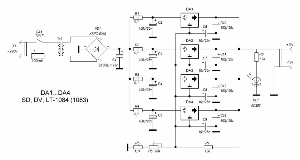 | а как насчет тока Добавлено (06.06.2013, 14:48) --------------------------------------------- дома есть 4 lm317 а мне надо получить ток ампер 4-5 и регулировку напряжения от 0 до 30