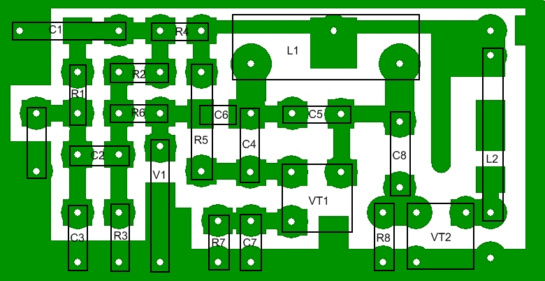 Это сразу было принято во внимание, и задача с экспериментом решилась просто. От марки варикапа и от емкости конденсатора С6, жук элементарно превращался в радиомикрофон. Чувствительность по микрофону падала в разы, схема свободно бралась руками. Получалась чистая речь, порядка 30-50см. Можно было и проще поставить потенциометр и не парить моск, но это кому как...