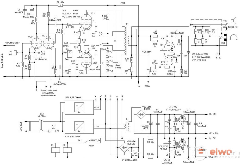 | Цитата Gamzan (  ) Еще раздумываю я: надо ли в катоды выходного каскада ставить электролит параллельно цепочке DA1R11? О великий любитель электронных трансформаторов, снимаю шляпу, по теме: электролита в схеме не обнаружил, ну оно и к лучшему, только вот не понял r11 для зачем?, и почему упр. da1 на земле? или ты так хитро управляешь da1? как по мне r11 в топку, придумать резюк между упр da1 и землей, и кондер думаю не понадобится, или я что-то не понимаю? зы. а у меня балет закончился, так скромно, тихо (подло), без феерверков сдох полтинник (ГУ-50) в левом канале, вот так, правда старичек был 73 года, и я ему не усугублял, теперь в поиск. (и не пойму каким образом помер, внешне идеален, под лупой разглядывал соединения, но не течет ток и все тут, втыкаю туда лампу с правого канала - норм)