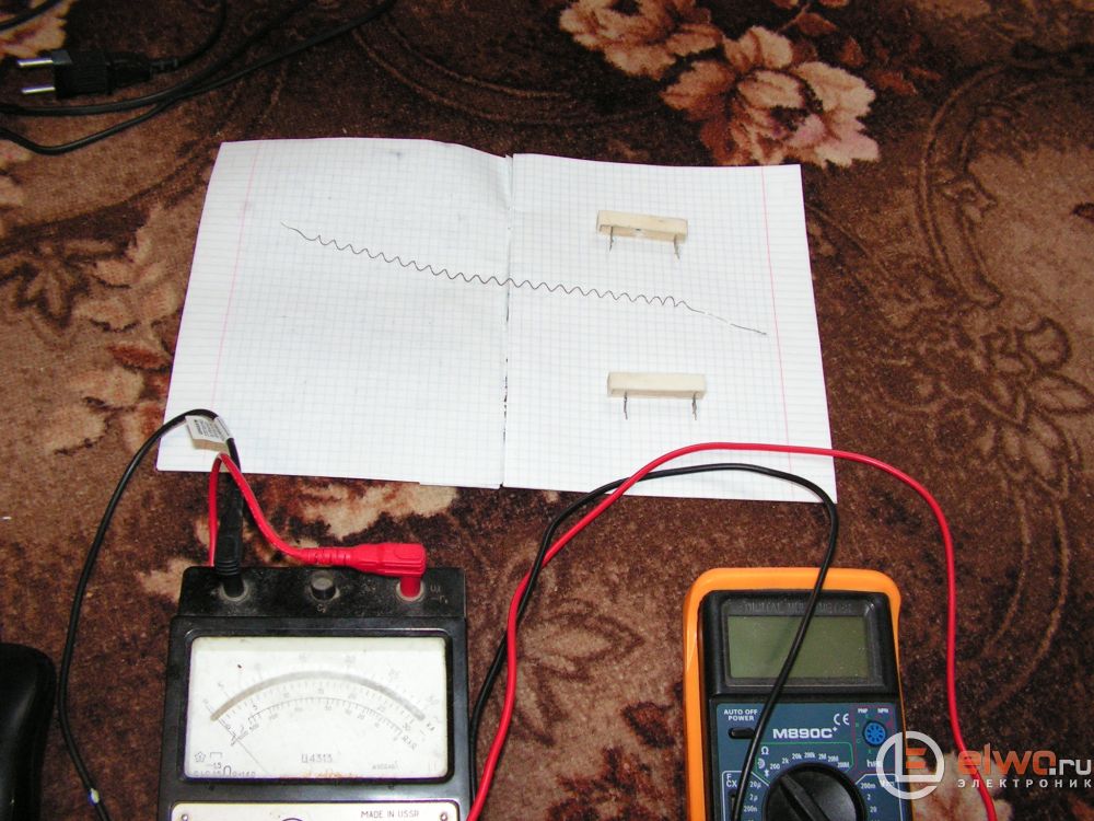 Добавлено (30.05.2014, 07:31) --------------------------------------------- для убиения пяти вольт при токе 1,5 А, оказалось достаточно вот такого куска нихрома диаметром 0,35 (а как вставить значек диаметра?), 2,8 ом по мультику, 1 ом по стрелочнику, кому верить х.з. Греется до ста градусов (ну и что, феты тоже страдали), буду мотать на эту керамику - 7,5 ком.