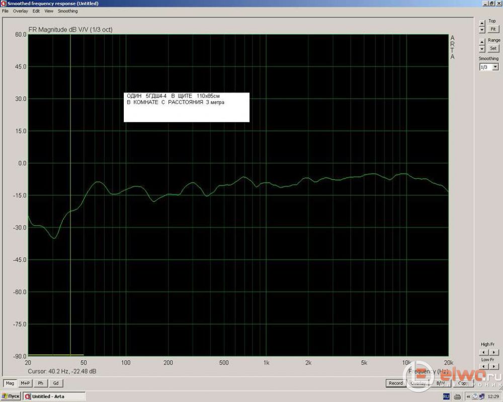 Не люблю расхваливать, говорю то что вижу. Первое впечатление очень положительное. У меня не было большого опыта в прослушивании разной техники и разных колонок, но интуитивное стремление к естественному восприятию инструментов (не электронной). Не знаю как передать, но ощущение живости и какого то присутствия есть, то есть звук не из одной точки идет даже с одного щита. Параллельно подключаю саббуфер от компа и колонку 10МАС низы глубокие глухие - для меня не то (но как ни странно уши привыкли именно к такому звуку). С инета качаю соло на барабанах - на щите они действительно похожи на настоящие, причем каждый барабан можно в отдельности отличить, отделить. По уровню 40 Гц смотри предыдущий пост, у меня звуковая сама по себе низы валит. Усь по линии полностью совпадает с АЧХ звуковой. Поскольку АЧХ звуковой валит, то сказать что АЧХ уся линейная не могу. Это и отражается на уровне воспроизведения на щите. Ставил и 25, 30, 35 Гц. Щит воспроизводит, но опять таки с учетом АЧХ звуковой и уся. Теперь о грустном. Дины 5гдш4-4 хрен где найдешь. У меня собраны по всему Алтайскому краю, все в разном состоянии, ход диффузора при подводимой одинаковой мощности у всех разный, выявил два дребезжащих на щите. Ставил щит в комнату 4м на 3 м эти 40 Гц ощущаются везде даже и не поймешь источника. Включил запись раската грома, у меня дочка прибежала в комнату мимо щита и к окну, а на небе солнце светит, крутила головой пока в упор не показал что играет. В зале 6м на 4м уже надо размещать по другому, то есть как я понял объем комнаты влияет. В общем первые впечатления.