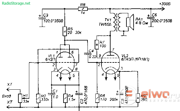 | Предварительний каскад на 6н1п, окончений на 6п43п-е, трансформатор выходной твк, вполне справляеться то своей задачей