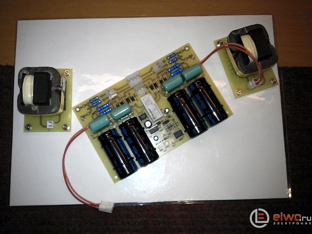 Дроссели на 3 Гн заказывал в компании "Транслед" в Новгороде. Схему задержки включения анодного выбрал на таймере IC555 и очень этим доволен. Работает великолепно. Установить нужное время легко, срабатывает чётко, ни малейшего намёка на дребезг контактов реле. Мне понравилось. В задающей цепи я поставил конденсатор 100 mF и резистор 470 k и получил задержку ровно 60 секунд. Может быть слишком всё уплотнил, но корпус планирую всего 270 на 230 мм, приходится ужиматься. Да, ещё. Стоит ли соединять минус блока питания с корпусом или лучше вывести его на общую шину рядом с регулятором громкости?