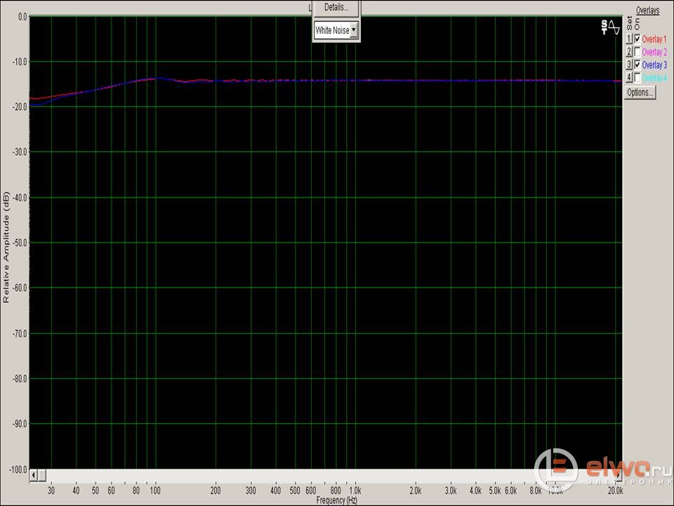 | Мужики, вот что пока получилось на гу50 однотакт по схеме Сергеева. 8 Вт, нагрузка 10 Ом, анодное 440 В, ток 91 мА, без ОООС. КНИ 3,1 ИМД 0,48, АЧХ - красная линия это АЧХ квуковой карты, синяя линия АЧХ уся.