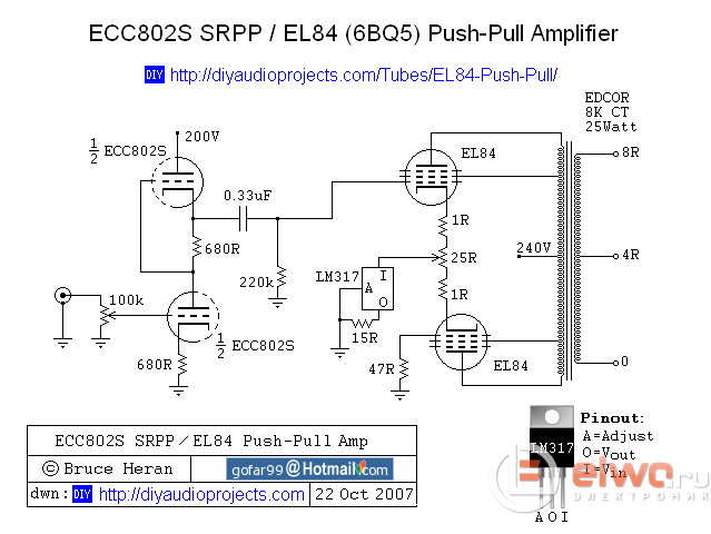 | grant, я собирал эту многострадальную схему с выходниками от магнитофона Днепр-14. На частотной характеристике она давала завал на ВЧ от 10 кГц, по-моему. Пришлось вводить коррекцию ВЧ, а с ней и дополнительные фазовые искажения. Потом я разобрал эту схему, а вместо нее слепил РР на 6Ф6С. Не знаю, может, с другими выходниками будет лучше, но моя история такая 6П14П мне очень понравились вот в этой схеме: В драйвер поставил 6Н2П, выходники те же днепровские. В звуке, наверное, лучшее из всего, что у меня получалось (на тот момент). Сейчас я балдею от полуторатактника из поста №71