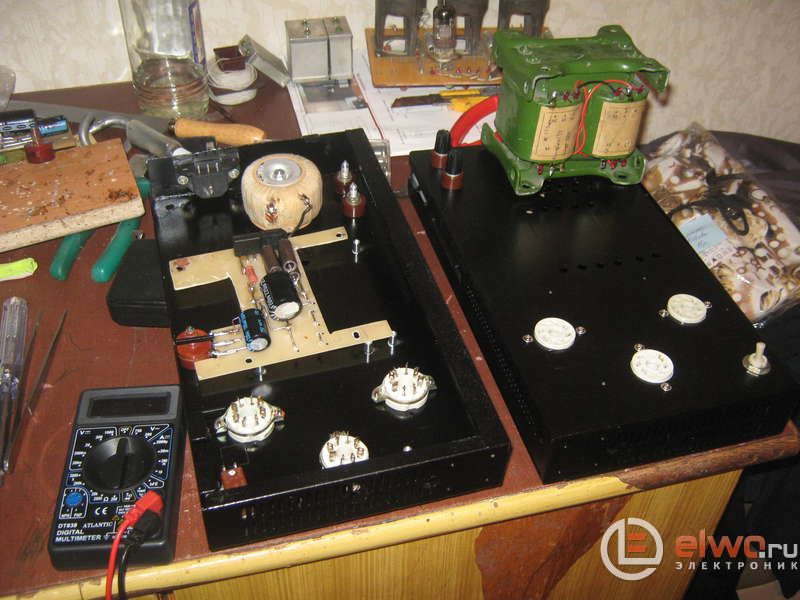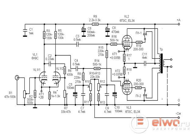Добавлено (25.12.2014, 09:51) --------------------------------------------- Продолжаем разговор. Вставить схему так и не получилось. Статья об этом усилителе написана в Word, схемы там как рисунки и сюда по чему то не копируются. Попробую на словах. Я тут по мере возможности занимался усилителем по схеме, которую мне рекомендовал Яр на лампах 6П14П, как я понимаю переработанная схема Лабутина. Подбирал детали, прорабатывал компоновку, варианты корпуса, ну и т.д. На картонном макете лампы 6П14П мне активно не нравились, хило выглядят, а тут ещё где то прочитал, что 6П3С звучат намного лучше и нашёл схему двухтакта на 6П3С, вроде не плохая, вот и хотел её обсудить. Мне она понравиласть тем, что все мои наработки по варианту с 6П14П подходят. Одно смущает - первичка выходных для ультралинейного 1000 и 300, а у меня было 1000 и 250. Железо делаю 20 х 35 мм. И ещё в схеме входная лампа 6Н9С, у меня её нет. Посмотрел в инете, что аналог 6Н2П, эти есть. Вопрос как придётся менять анодные и катодные резисторы и выставлять режимы?