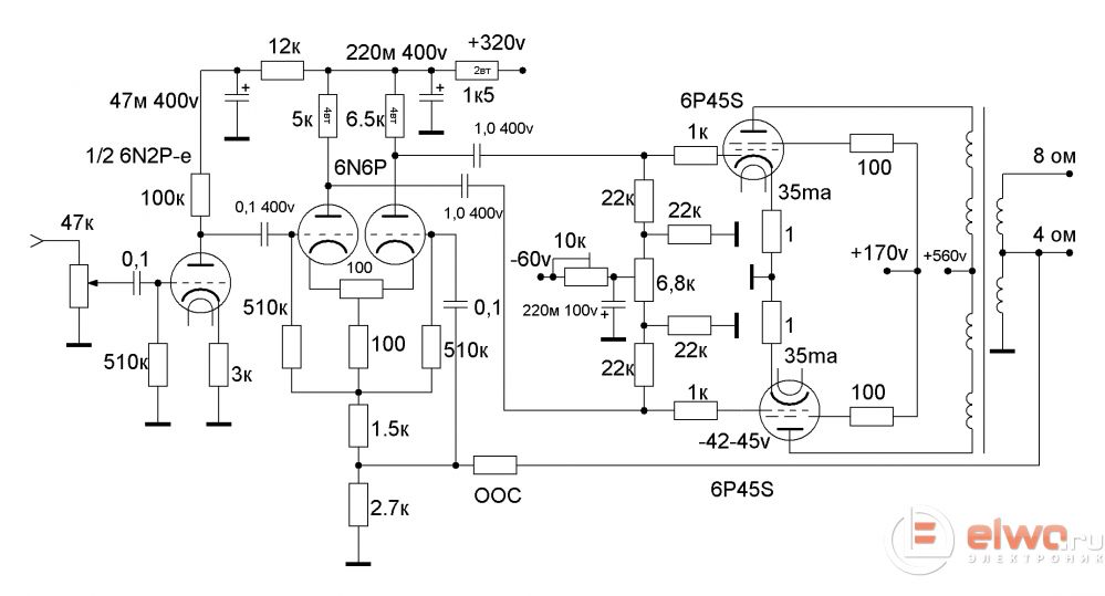 | Простой и строгий дизайн - неплохо. Напряжение как и по схеме - 560В? От того чёрного ТОРа? И как 6п45с с выходной мощностью?