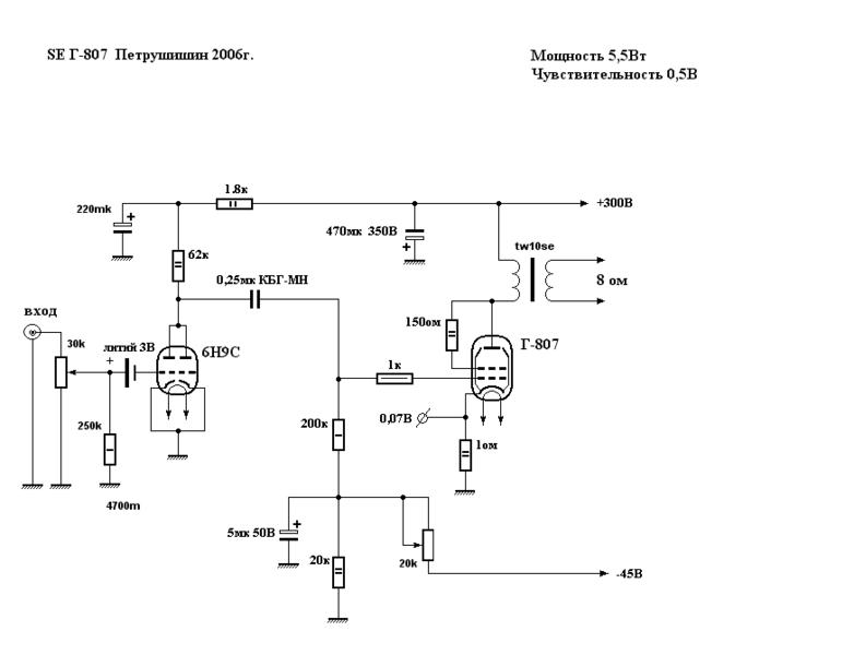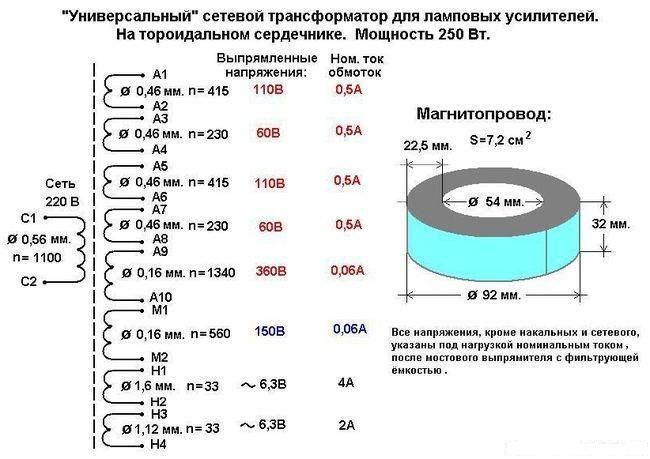 | Здравствуйте. Подскажите пожалуйста. На одном сайте нашел У меня появилась мысль, что если купить тороидальный трансформатор у нас стоит 800(900)руб. для питания галогенных ламп Р-150 вт ~12в. размеры вроде подходят, ходил в магазин линейкой замерял и перемотать его т. е. убрать ~12в., домотать 350в. и ~ 6,3в. . Пойдет ли он под эту схему? или Единственное заместо 6п7с хочу поставить Г-807.Нужен совет т.к. очень хочется собрать на Г-807 ( красивая она ), а вот трансформаторы закончились. Спасибо.