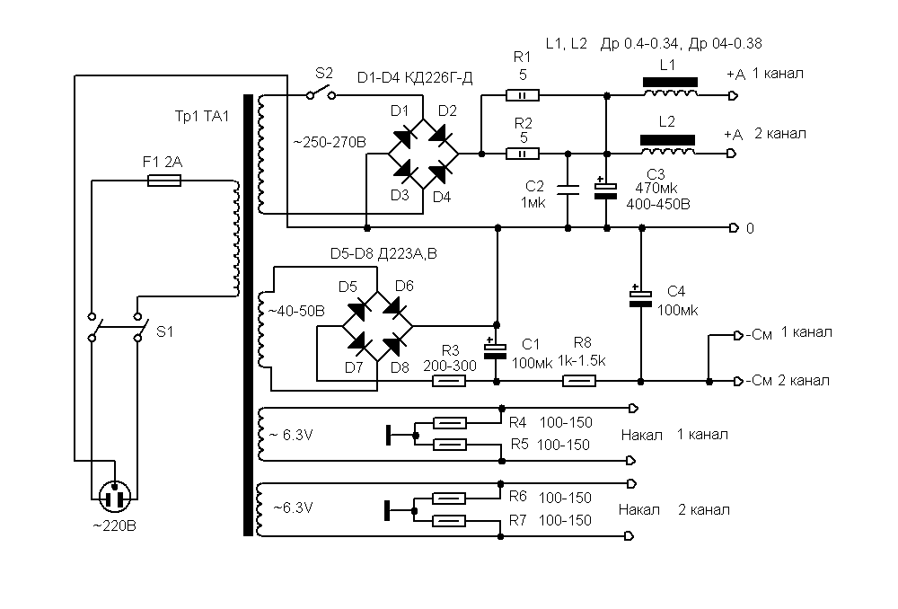| Gamzan с5,с10 на 63в понятно, а я думал на 250в, т.к. разделительные конденсаторы на 250в