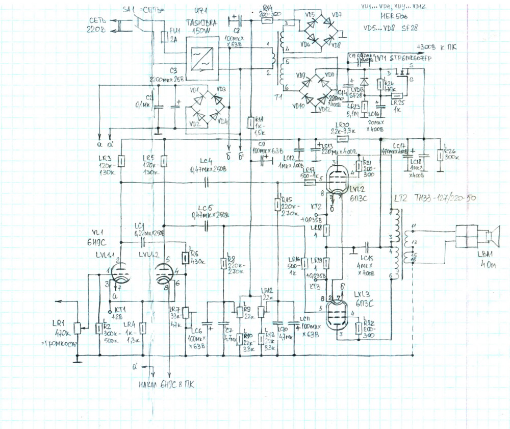 | Gamzan, здравствуите а можно схемку бп,и какое у усиля анодное,