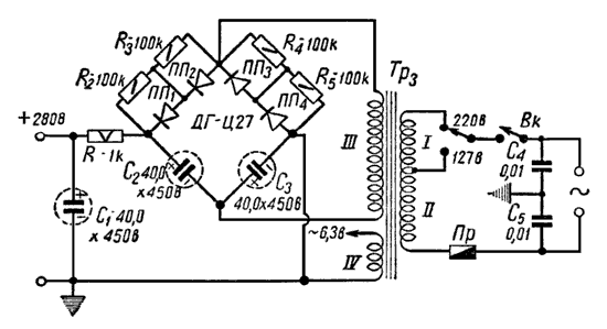 | Вот как по этим схемам - два диода и два конденсатора электролита.