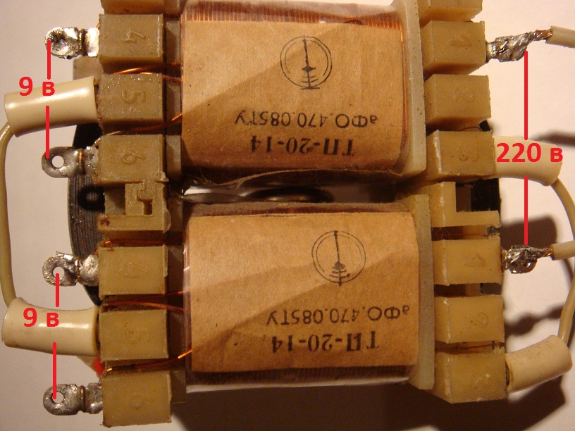 | Наверное наоборот. Толстый провод - обмотка с почти нулевым сопротивлением это первичка, а в тонком большое сопротивление - это вторичка. А вот, что отматывать, не знаю. По логике с одной катушки вторички снимать витки, что бы с 9В опуститься до 140В? А со второй соответственно с 9В до 12В? Тогда какую роль будет играть перемычка между вторичками, убрать ее совсем?