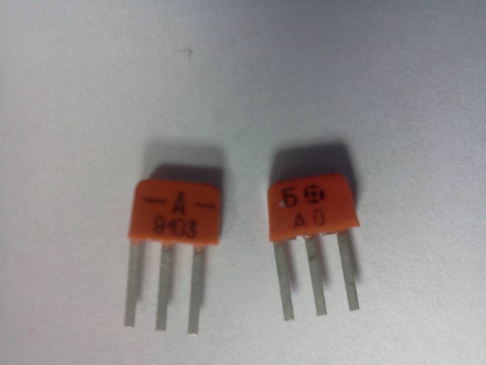 | Жёлтая капля 104 - конденсатор на 0,1мкф Красное с буквой А в центре - транзистор кт361, с буквой Б слева - кт315. Чёрные с дыркой - транзисторы кт814, кт817, кт815 соответственно.