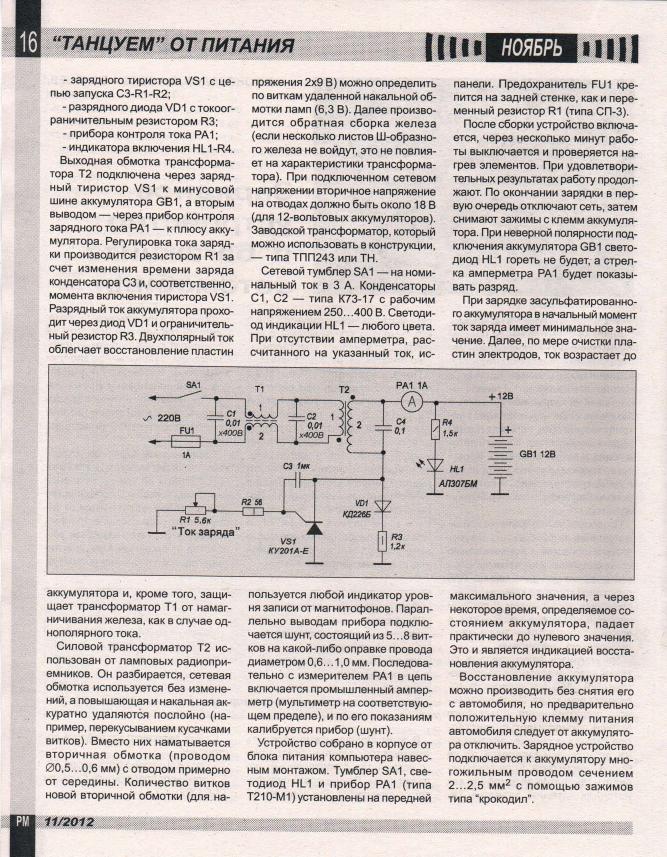 | Всем привет. Вот предлагаю импульсный зарядник на ваш суд. Нашел его в журнале "Радиомир 11.2012".И сразу несколько вопросов. Действительно ли это импульсный зарядник? Как и из чего изготовить трансформатор Т1 если нет готового?