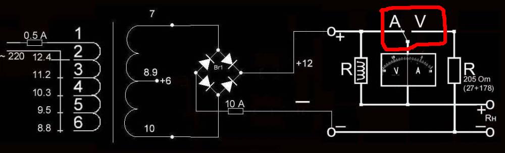 | Quote (bars59) Схема у тебя верная.Только не будет показывать в режиме 6 вольт. Quote (bars59) Поставь еще один переключатель,чтоб видеть напряжение в режиме 6 вольт.А если 6 вольт не собираешься заряжать,можно и не ставить.