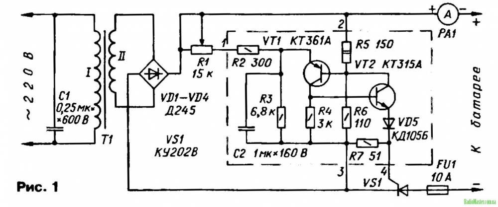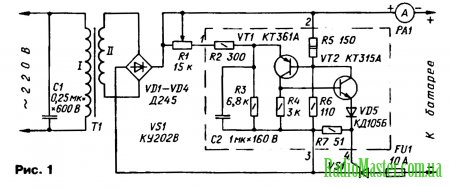 Названное обстоятельство является существенным недостатком зарядных устройств с регулятором тока тринистором."