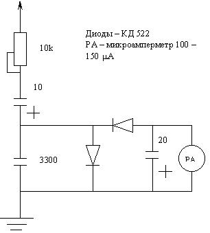 и еще куда подключать простую схему на диодах, к линейному или к выходу усилителя мощности?