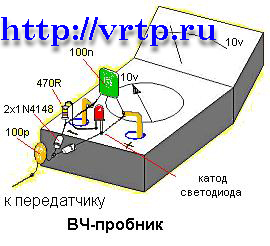 | Собрал универсальный детектор, точнее только ВЧ. Подношу его к прослушке(http://elwo.ru/publ/proslushka/1-1-0-238) в упор, стрелка вольтметра отклоняется только на 0.3В. Если отдалить так вобще не отклоняется. Пробовал подносить и к (http://elwo.ru/publ/zhuchok_dlja_proslushki/1-1-0-446), также хило отклоняется. Подскажите пожалуйста, что не так.