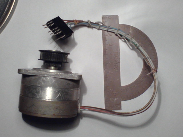 | У тебя 6 выводов? Сначала меряешь сопротивление обмоток. у тебя 2 обмотки. Сопротивление крайних обмоток до среднего вывода в 2 раза меньше сопротивления между крайними выводами обмоток. Этим ты определишь средние выводы 2-х обмоток. Соединяй эти 2 конца вместе - это средний вывод. Теперь сопротивление всех обмоток от этого среднего вывода должны быть одинаковыми (с погрешностью). Далее, нужно оценить само сопротивление обмоток. Для нашего случая подойдут движки с сопротивлением обмоток 50-100 Ом. Далее нужно оценить шаг движка. Он должен быть примерно 1,8 градуса. Сделать это можно на глаз, подключив к схеме. Если вал крутится более-менее плавно без особых рывков, то движок подойдет. Эта схема не требовательна к шагу движка. Главное - сопротивление обмоток. И напряжение, конечно.