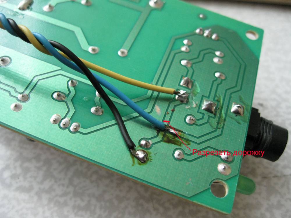 | Собрал такую плату: На основной плате разрезал дорожку и припаял провода.