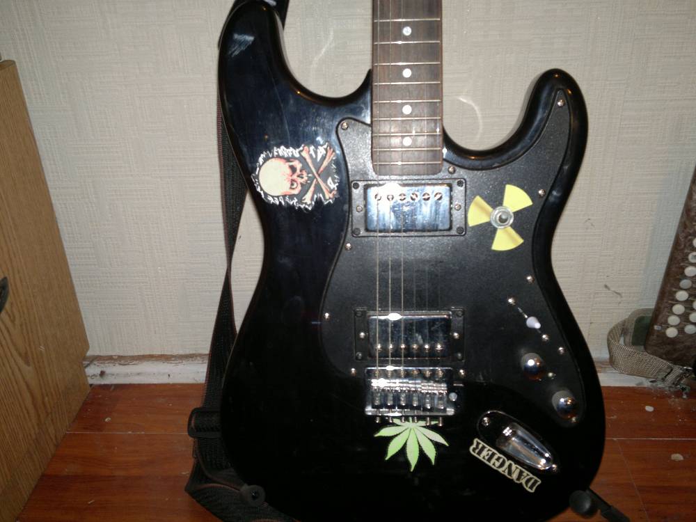 | А это моя гитара FENDER TELECASTER Купил ее в мастерской которой работал, сказал что делать нет смысла, там сломалось, здесь отвалилось, в итоге купил за 1000р. Изначально звучание не понравилось, фон, больше грязи чем звука, ну это и понятно, качество звукоснимателей сингл, очень оказалось плохое. Решил переделать: начал с замены синглов на хамбакеры, достались мне хамбакеры за бесплатно, сколько они стоят не знаю, заделал дыры от синглов и вырезал новые для хамбиков и покрасил. Заменил крутилки пластиковые на хромированные, обклеил ну как без этого, установил активную электронику, и поставил переключатель с возможностью выбора пассивной игры и активной, экранировал корпус изнутри, вырезал с задней части гитары отсек для аккумулятора на 12. 4а. от старого портативного проигрывателя. Звучанием остался доволен на 100% сейчас практически не играю, нет времени, но нахожу время для акустической гитары.